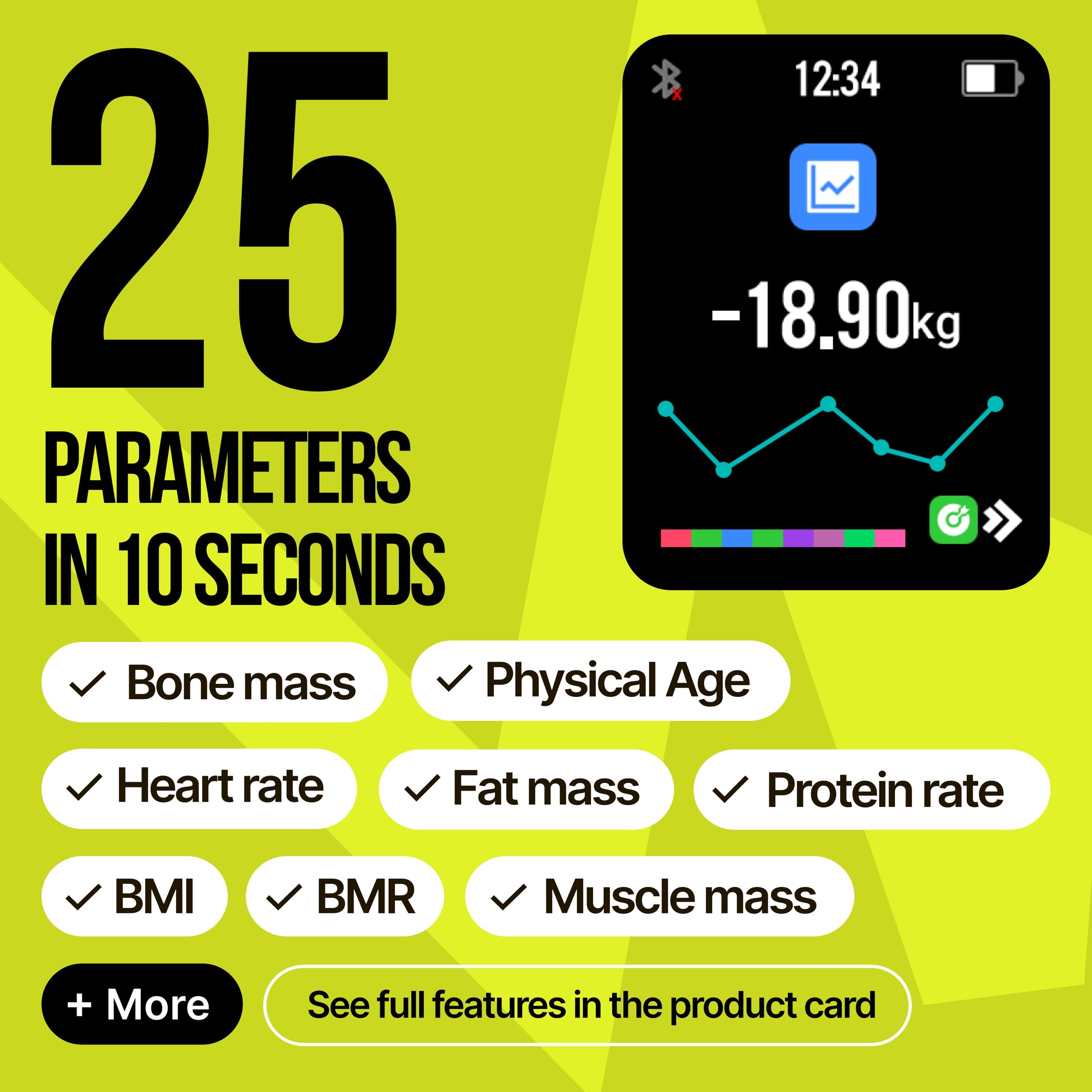 - COMPREHENSIVE HEALTH TRACKING: Smart scale for body weight with 25 health metrics, scale with bmi, body fat, muscle mass water weight ,bone mass, and heart rate. Stand on these smart weight scales with bare feet